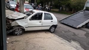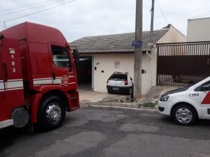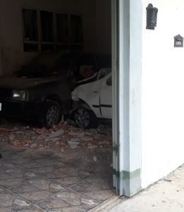 O carro invadiu o muro da casa, fazendo um buraco na construção. Ele só parou quando bateu em outro carro, um Uno, que estava dentro da garagem. A Polícia Militar e o Corpo de Bombeiros foram acionados para atender à ocorrência.